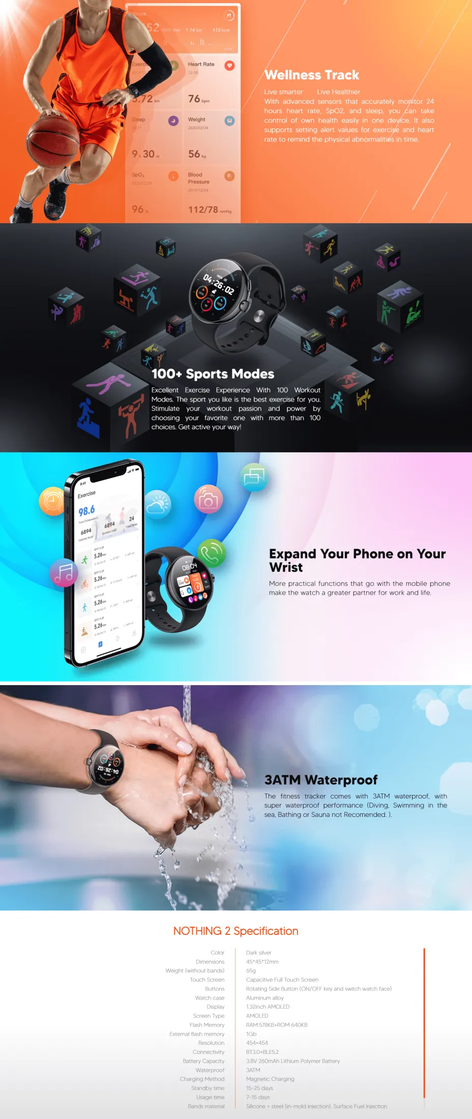 - Waterproof Design: The Xinji Nothing 2 is rated 3ATM waterproof, providing protection up to 30 meters. Whether you’re swimming or simply wearing it during daily activities, this smartwatch is designed to withstand various conditions without compromise.